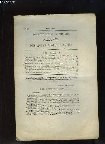 Recueil des actes administratifs, n°13 - préfecture de la gironde : police du roulage - police de la pêche - itinéraire du comté d'achat ... PDF Kindle