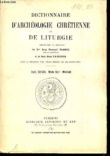 Free Rme dom cabrol fernand, r.p. dom leclercq henri - Dictionnaire d archéologie chrétienne et de liturgie - fascicules cx - cxi : mans (le), mariage PDF Download